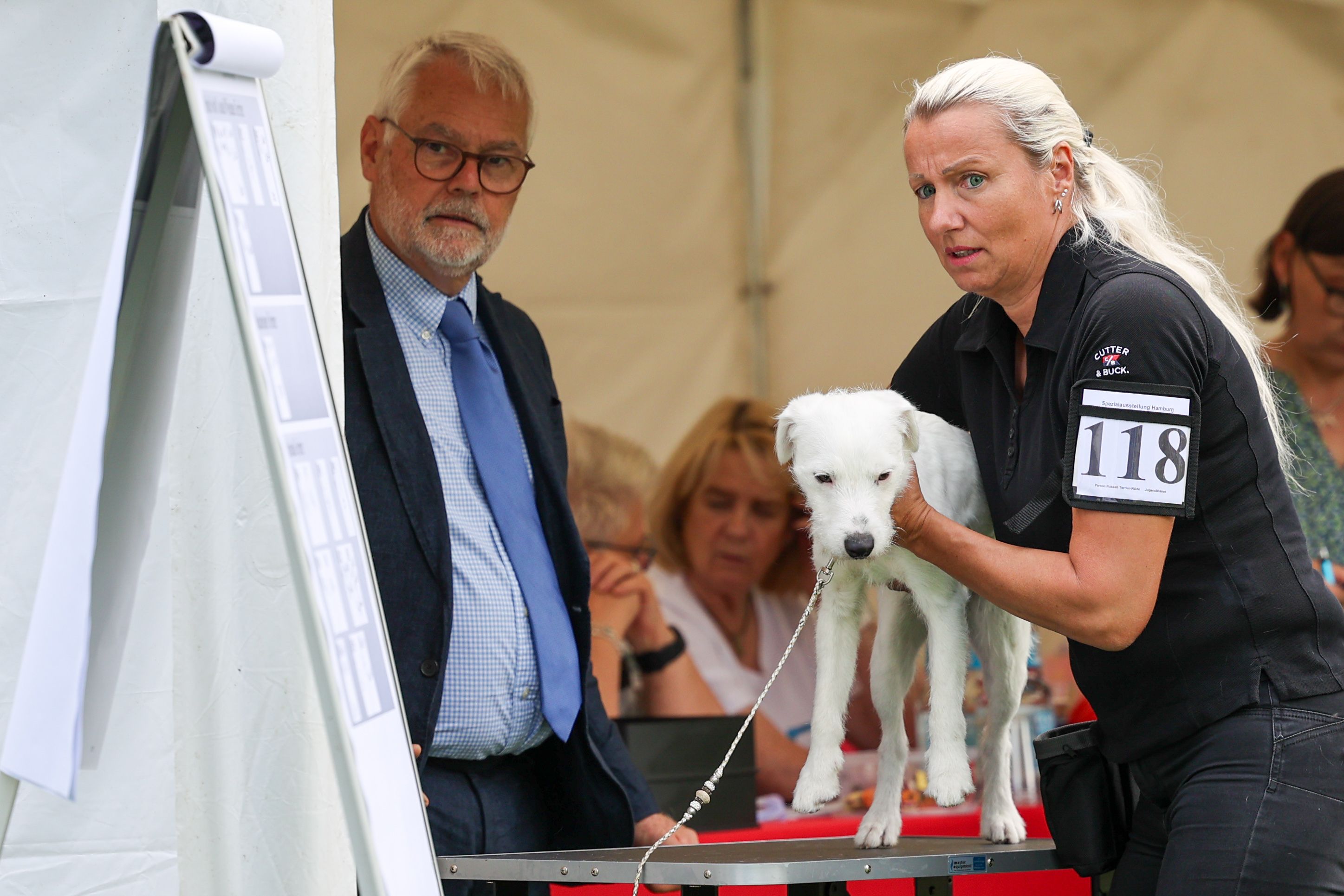 Tender Fellows No Choice Nyke und Tender Fellows Nobody But Me Nemo hatten ihr Showebüt und haben das hervorragend gemeistert. Für Nemo reichte es am Samstag mit V1, J-VDH und J-CAC für die erste Anwartschaft zum Jugendchampion. Er wurde außerdem BESTER JUNGHUND! Nyke erhielt beide Tage „leider nur“ SG, aber ganz tolle Richterberichte. Nun ja… sie (auch Nemo am Sonntag) seien zu jugendlich…. Wir hatten ein schönes Wochenende in Hamburg
