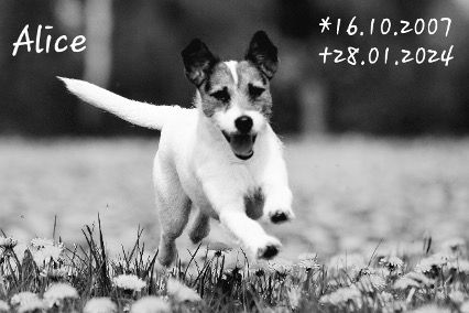 Wir sind noch immer geschockt, es ging einfach alles zu schnell… Noch vor wenigen Tagen machte Alice große Gassi-Runden (bis zu 10km) mit und nun ist sie schon seit Sonntag nicht mehr da. Unbegreiflich…