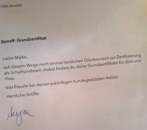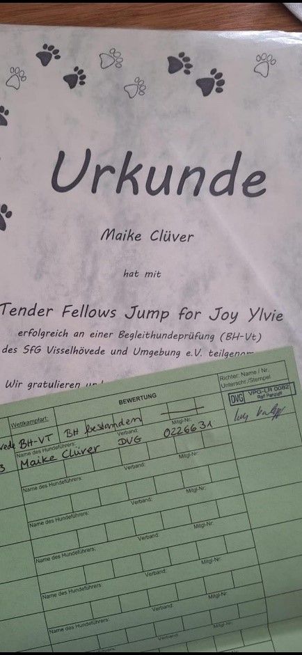 Ich bin mega stolz auf uns. Es ist endlich offiziell! Über ein Jahr wirklich harte Arbeit liegt hinter uns; ja! Auch ich musste viel viel lernen…. Vor einiger Zeit haben Ylvie und ich im Übrigen die BH-VT bestanden. Wir haben wirklich eine Menge geschafft.