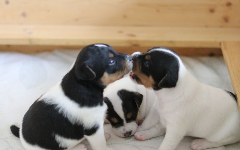 Noch in der Wurfkiste, aber deutlich aktiver :-)! Alle Welpen haben die Augen auf und ihre Schritte werden immer sicherer! Man kann schon ein paar erste Interaktionen untereinander beobachten...
