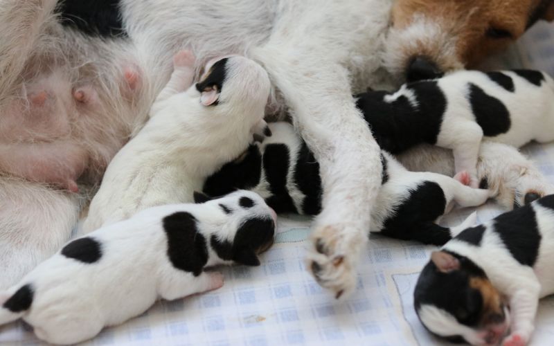 Myllys erster Wurf ist am Sonntag den 14. Juli zur Welt gekommen. In nur 65 Minuten brachte sie völlig problemlos 5 tolle Welpen zur Welt, 3 Hündinnen und 2 Rüden.