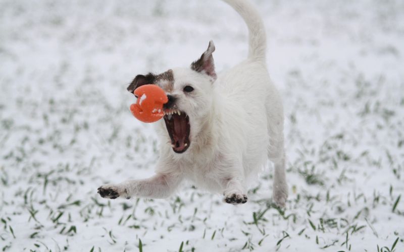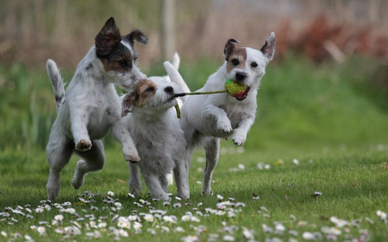 Sie ist zwar sehr anpassungsfähig, lässt sich aber von unseren anderen Hunden überhaupt nichts gefallen und mischt immer ordentlich mit :-). Allerdings ohne sich wirklich zu streiten. Sie spielt auch mit sich allein – wirft sich selbst den Ball in die Luft, um ihn zu fangen oder verbringt Stunden am Teich und fängt die Tropfen, die durch eigenes Planschen entstehen. Hundeplatz, Unterordnung und Beschäftigung war nie was für sie. Spaziergänge reichten – oder sie hat sich allein beschäftigt. Völlig unkompliziert und so gar nicht „terrierlike“ – wüsste ich es nicht besser, würde ich sagen, sie ist keiner 😉! So ganz richtig ist das aber auch nicht – sie kann durchaus den Terrier raus hängen lassen… Auch Paula ist ansonsten oft auch einfach nur verkuschelt.
