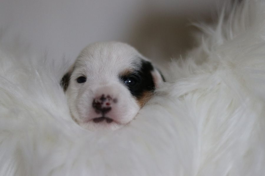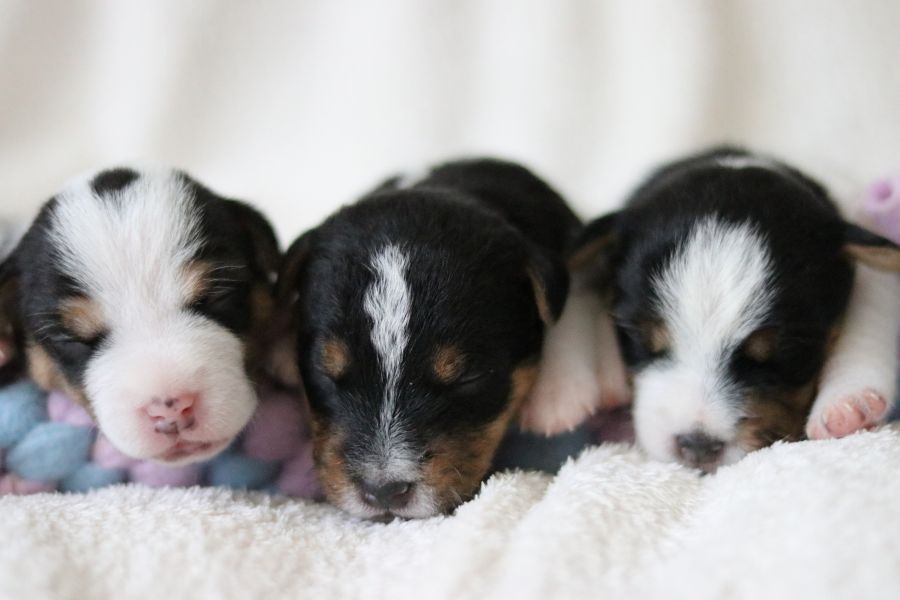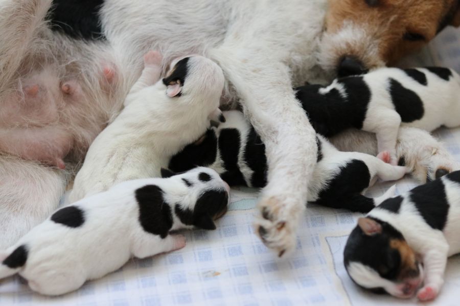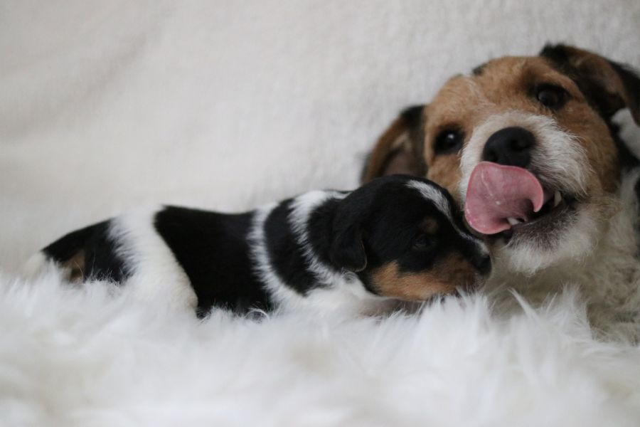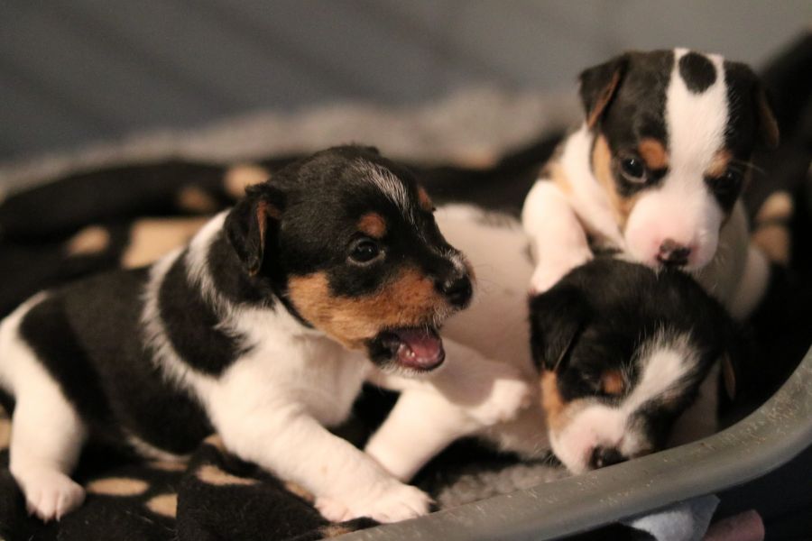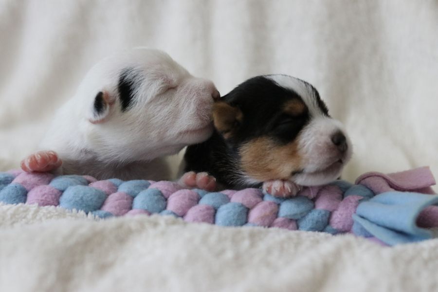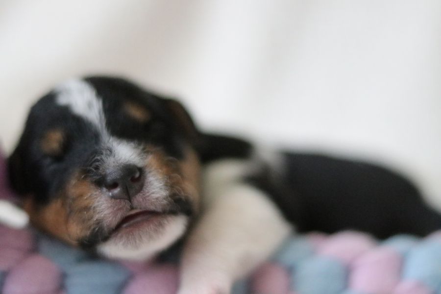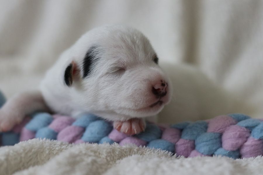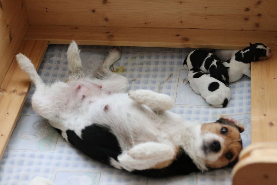 Myllys erster Wurf ist am Sonntag den 14. Juli zur Welt gekommen. In nur 65 Minuten brachte sie völlig problemlos 5 tolle Welpen zur Welt, 3 Hündinnen und 2 Rüden.