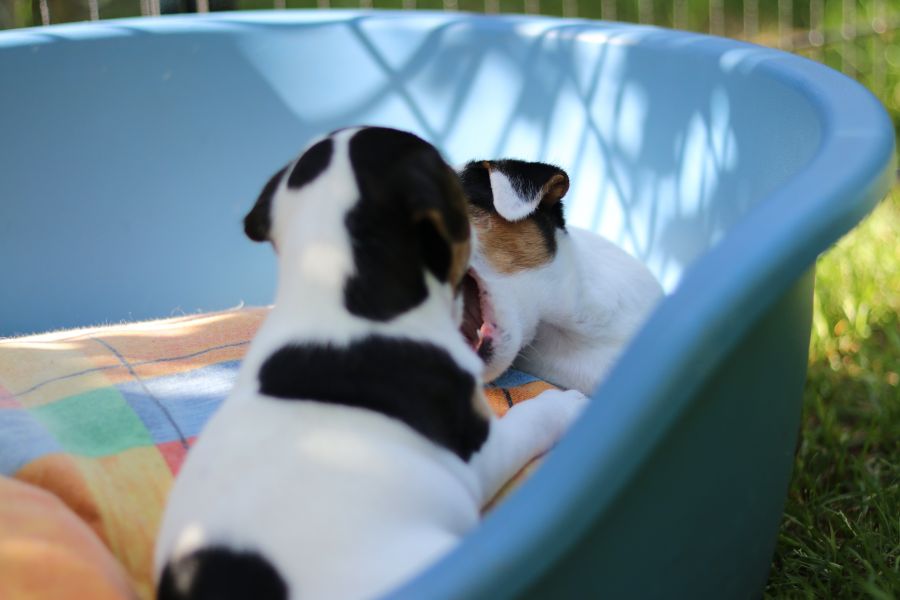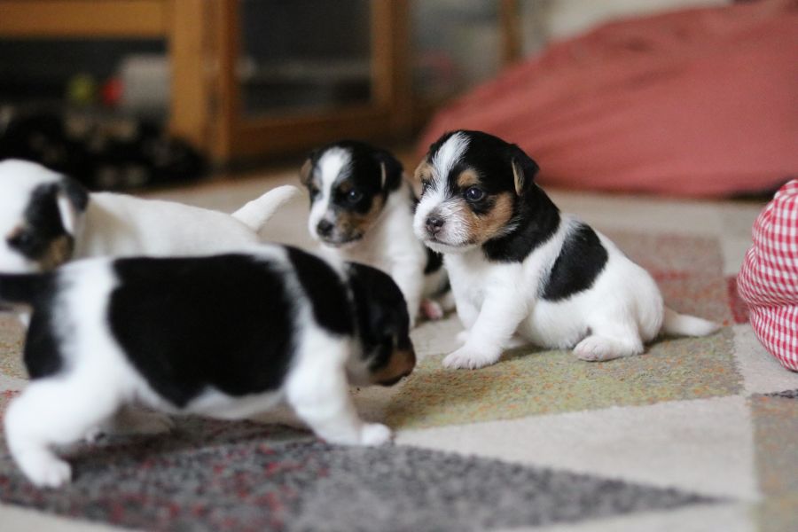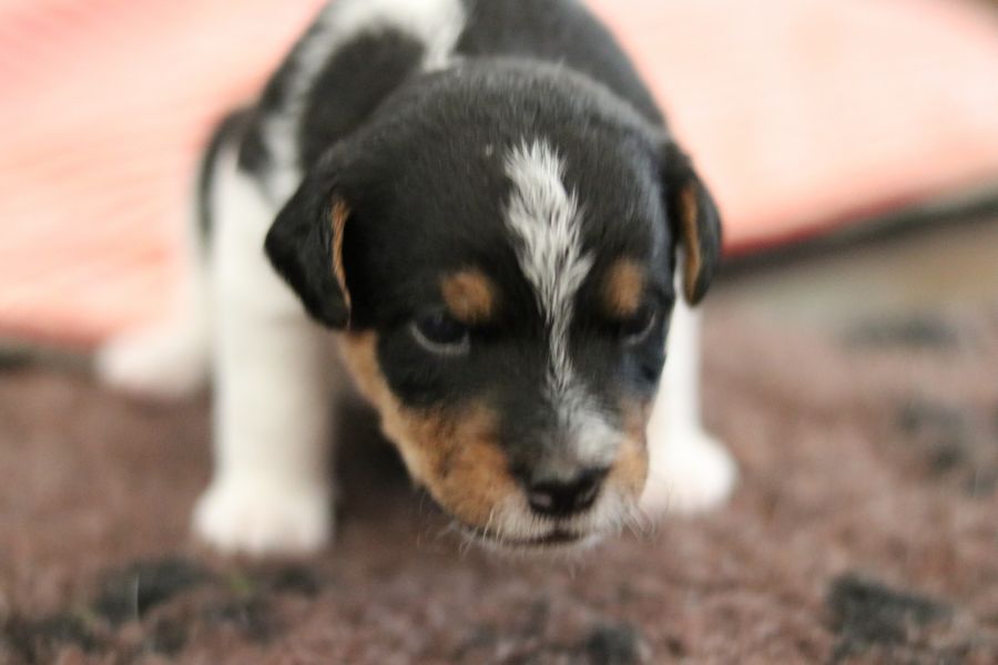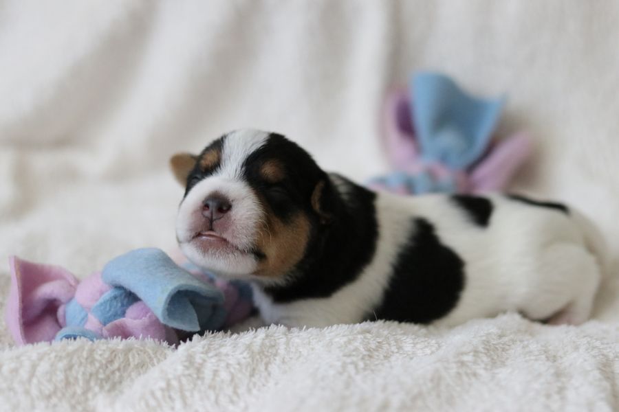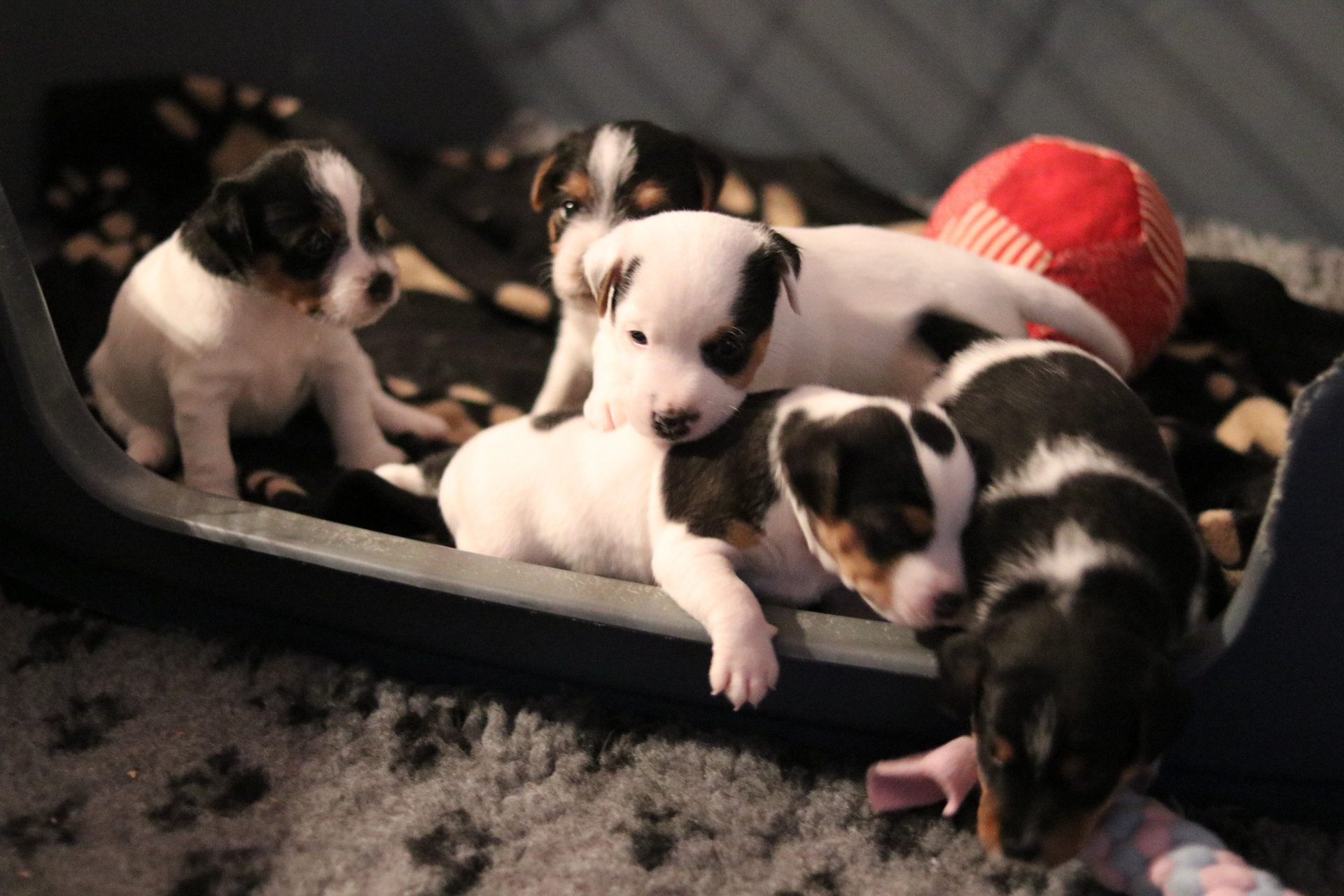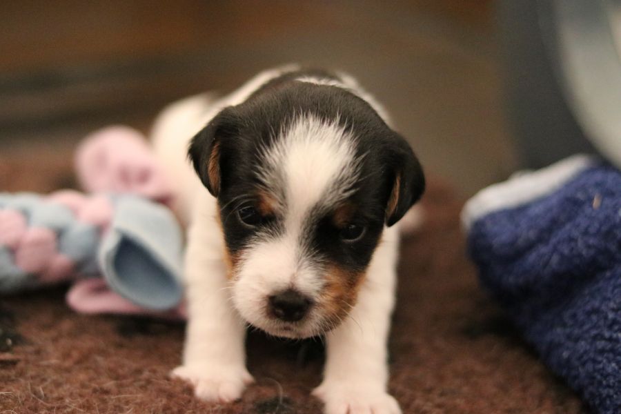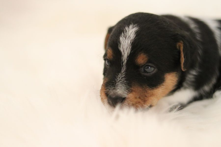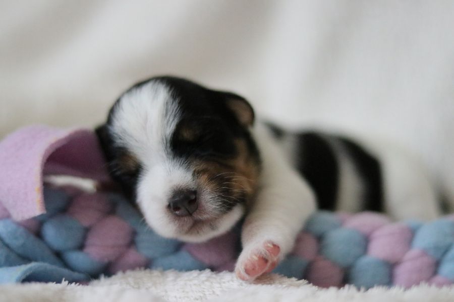 Myllys erster Wurf ist am Sonntag den 14. Juli zur Welt gekommen. In nur 65 Minuten brachte sie völlig problemlos 5 tolle Welpen zur Welt, 3 Hündinnen und 2 Rüden.