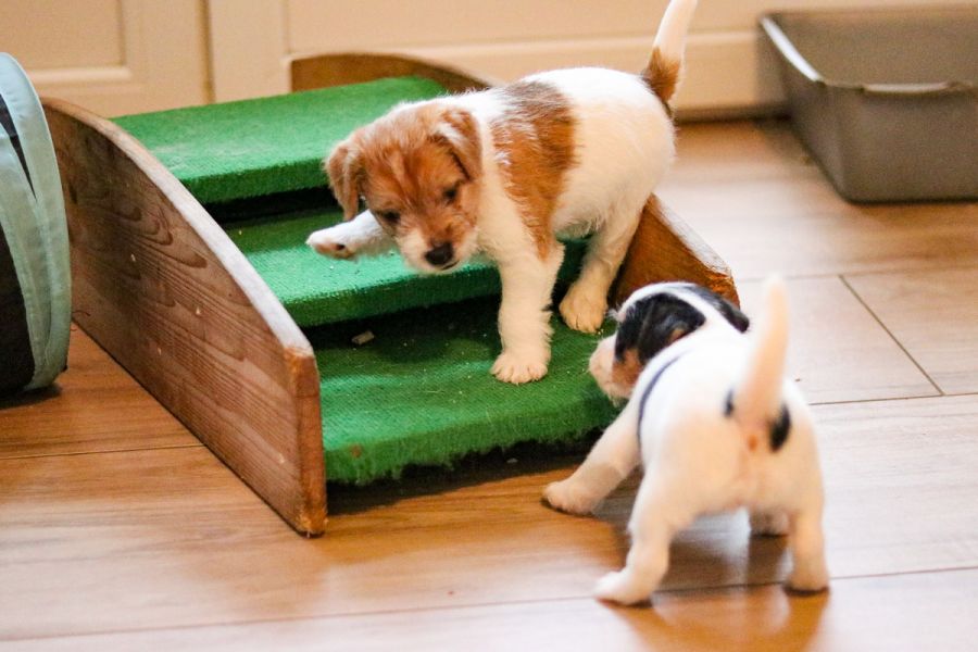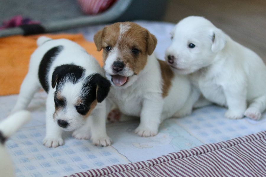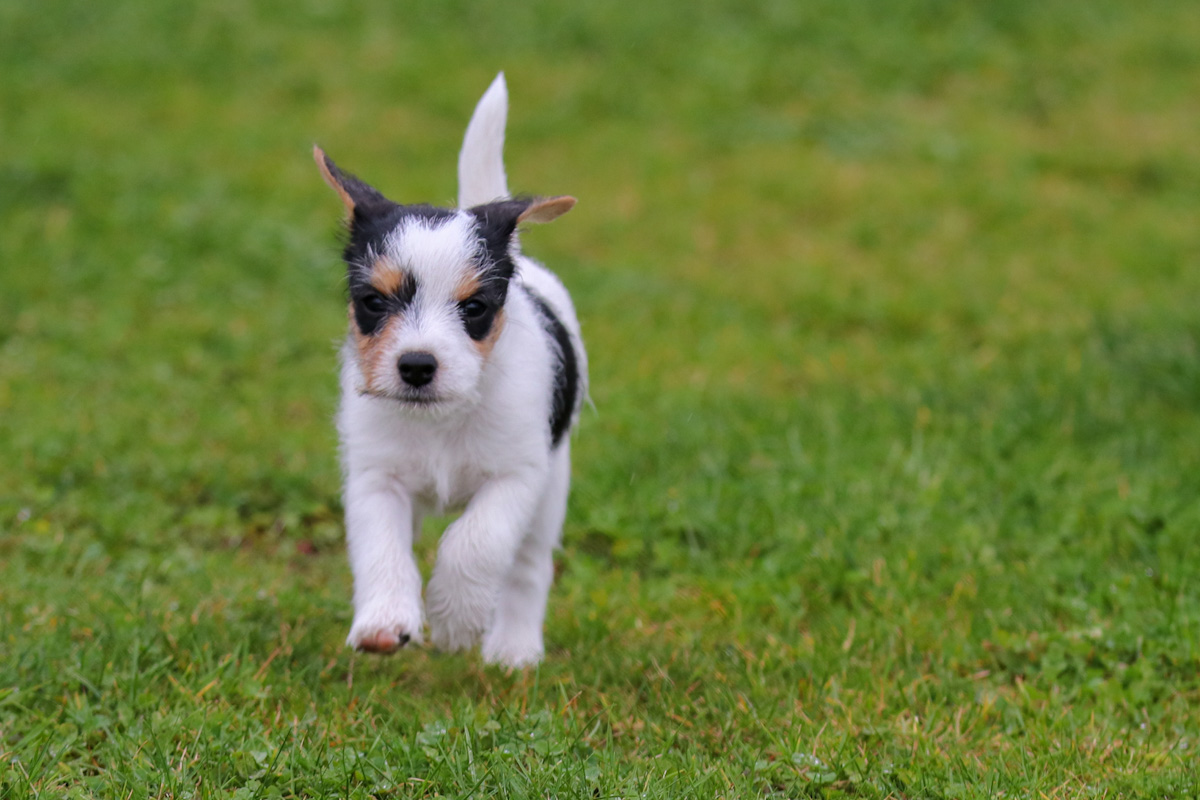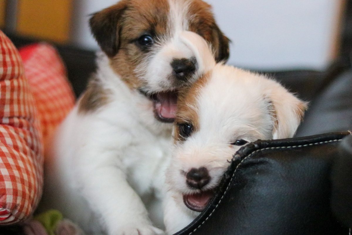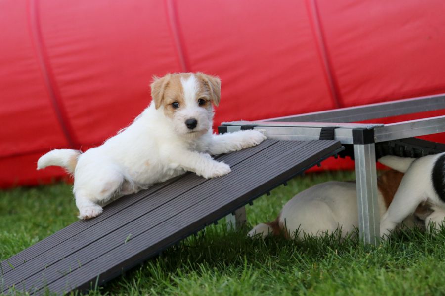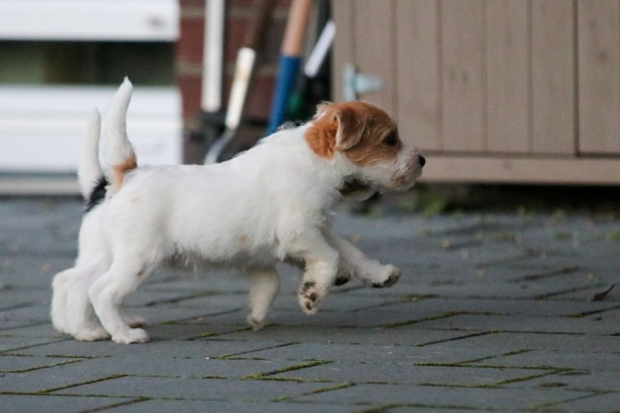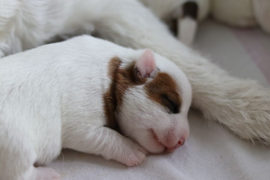 Noch in der Wurfkiste, aber deutlich aktiver :-)! Alle Welpen haben die Augen auf und ihre Schritte werden immer sicherer! Man kann schon ein paar erste Interaktionen untereinander beobachten...