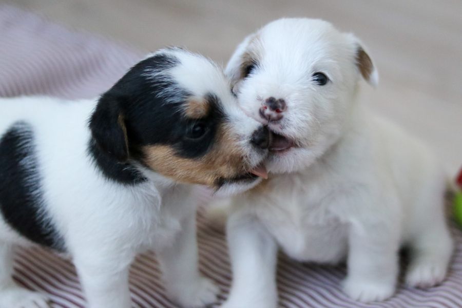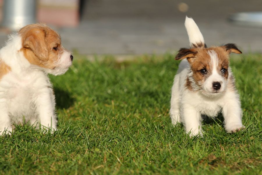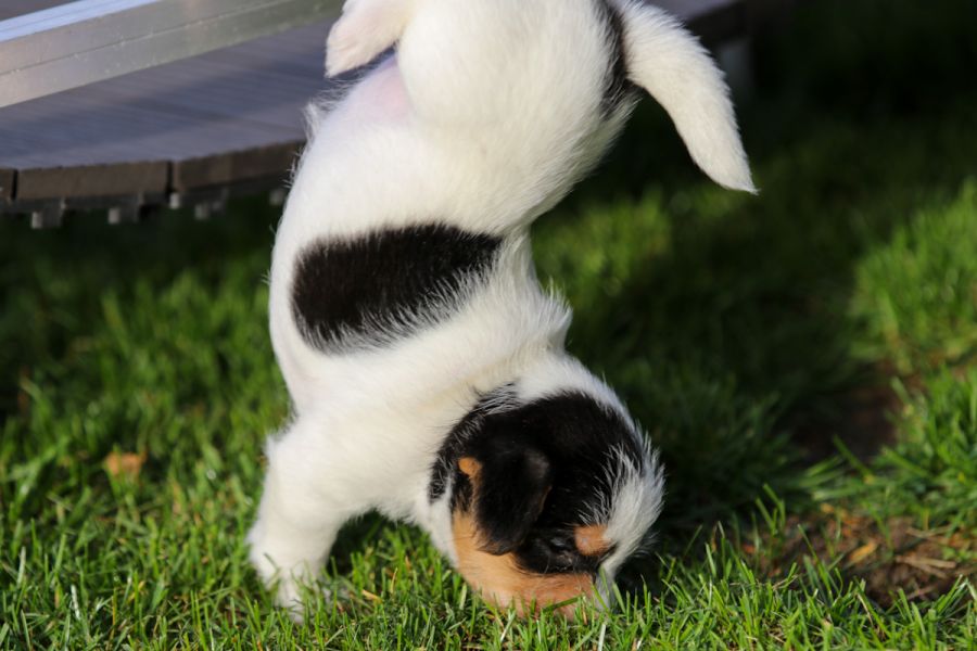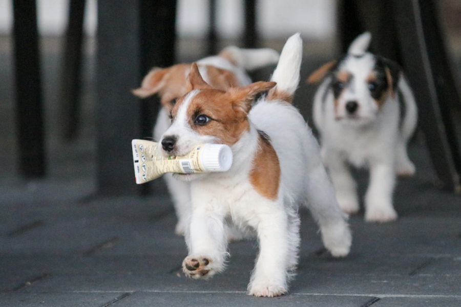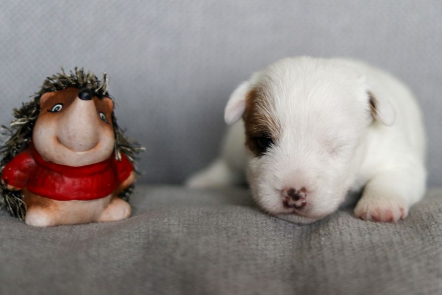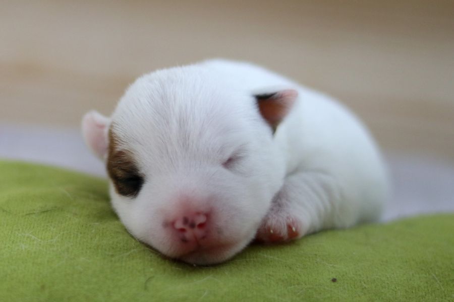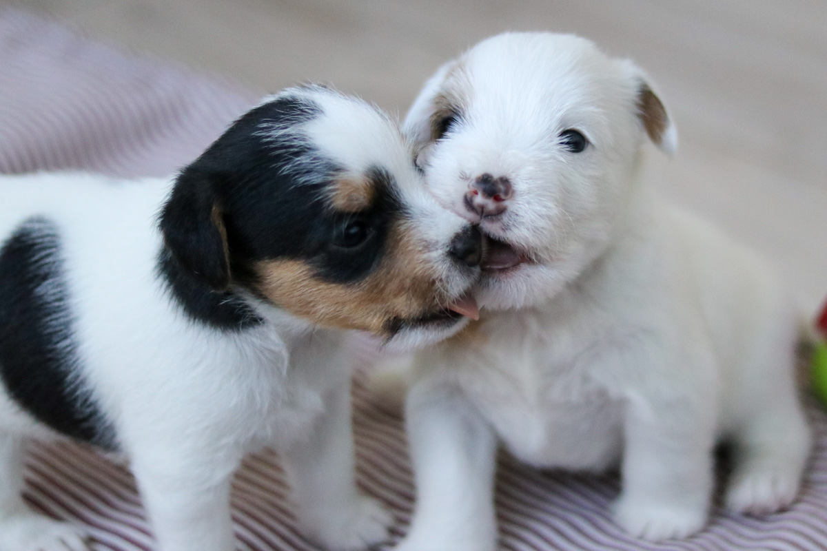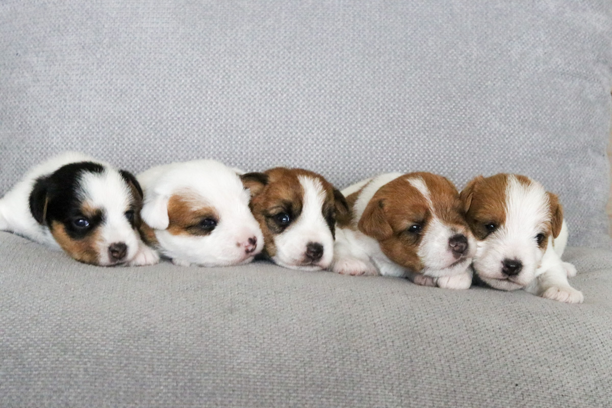 Noch in der Wurfkiste, aber deutlich aktiver :-)! Alle Welpen haben die Augen auf und ihre Schritte werden immer sicherer! Man kann schon ein paar erste Interaktionen untereinander beobachten...