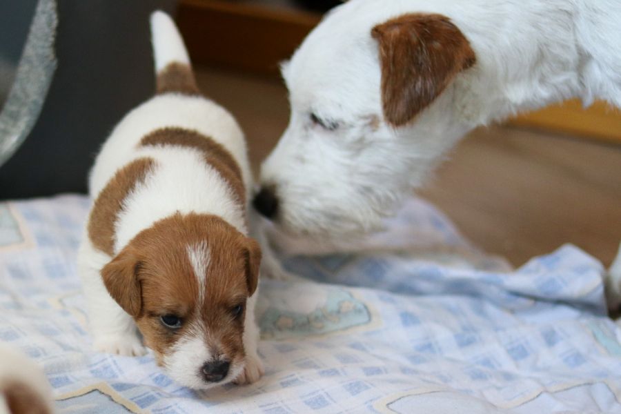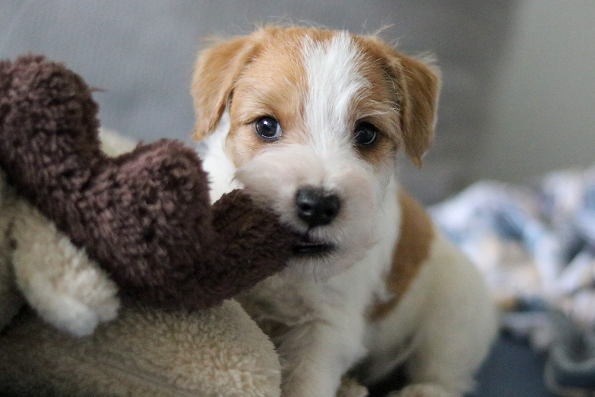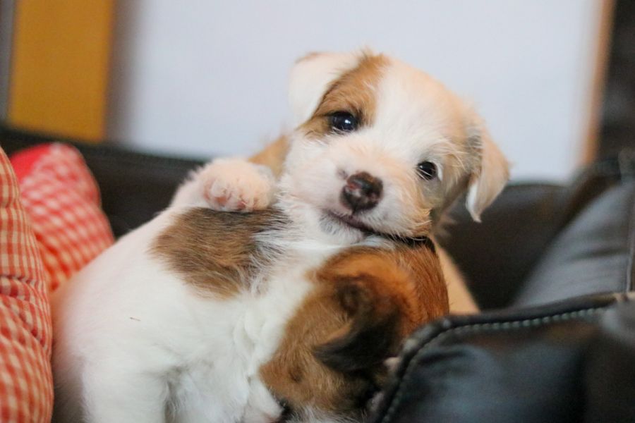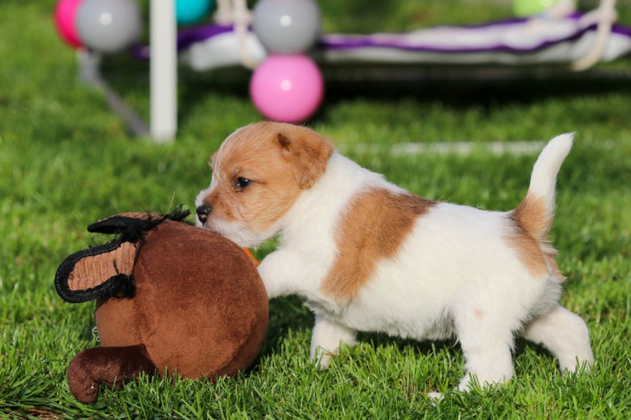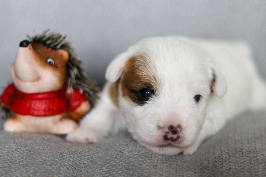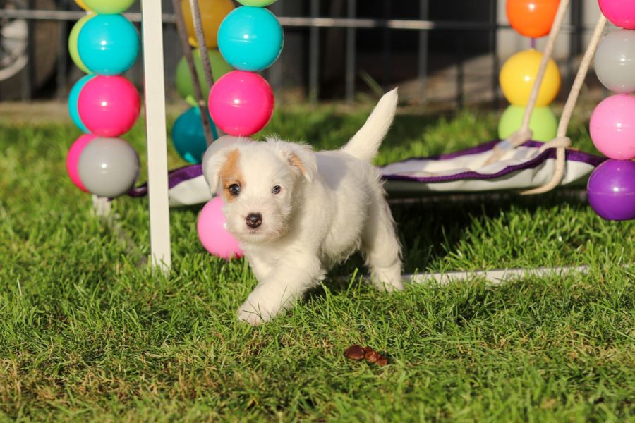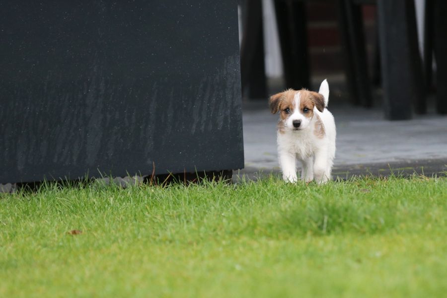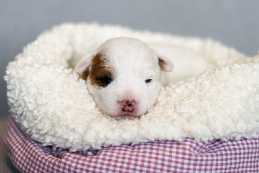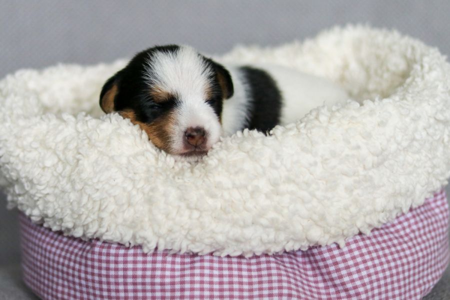 Noch in der Wurfkiste, aber deutlich aktiver :-)! Alle Welpen haben die Augen auf und ihre Schritte werden immer sicherer! Man kann schon ein paar erste Interaktionen untereinander beobachten...